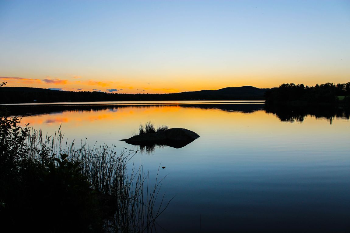 Zonsondergang over een Zweeds meer. Tolvsbo, Soderbarke.