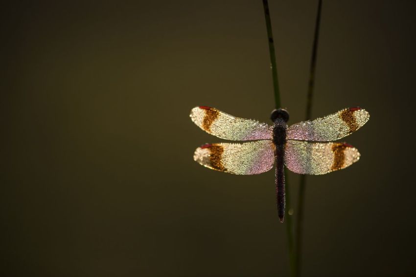‘Deze foto heb ik in de avond uren gemaakt bij Leersum. Ik rijd een aardig eindje, want ik weet zeker dat daar mooie en wat meer libellen zitten. Door de ondergaande zon krijg je super mooie kleuren in de vleugels.’