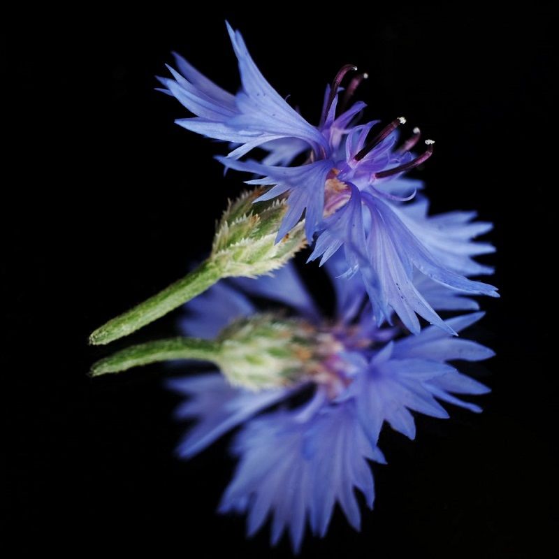 ‘Deze foto van een afgeplukte korenbloem heb ik binnen gemaakt. Ik heb wel vaker bloemen op een zwarte achtergrond gefotografeerd, maar nog nooit met behulp van een spiegel. Dat was een kleine leerschool, want op de enige bruikbare spiegel die ik in huis had, was elk krasje en stofje zichtbaar. Gelukkig is daar in de nabewerking wat aan te doen en heb ik daar ook wel de tijd voor.’