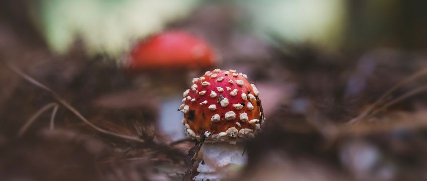 ‘Eind september bij een bezoek aan mijn ouders heb ik toch de camera meegenomen tijdens een wandeling op de Veluwe. En als je dan de eerste vliegenzwammen ziet dan moet je daar toch even een foto van maken. Ik heb net zo lang geschoven tot ik tevreden was over de achtergrond. Het licht scheen net mooi door de bomen wat een zachtgroene sfeer geeft en het grote diafragma zorgt ervoor dat de andere zwam onscherp maar herkenbaar in beeld is.’