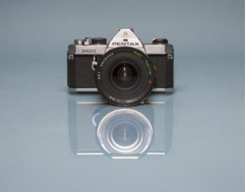 Bij 3D-producten (denk aan een camera) is spiegelen alleen niet genoeg. Dan maakt hij een aparte “reflectiefoto” vanuit de juiste hoek en monteert die netjes in het beeld. Het resultaat: realistisch, schoon en consistent.