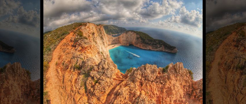 Op een klif van formaat staan, heeft echt wel iets imposants. Peter ging nog een stapje verder door de kliffen en het glasheldere water eronder te fotograferen op een manier waarbij het beeld werd vervormd en de kliffen ineens nog veen imposanter lijken en de dieptes veel dieper. Een beetje week gevoel in de maag, als we zo over de rand van het gesteente mogen meekijken.