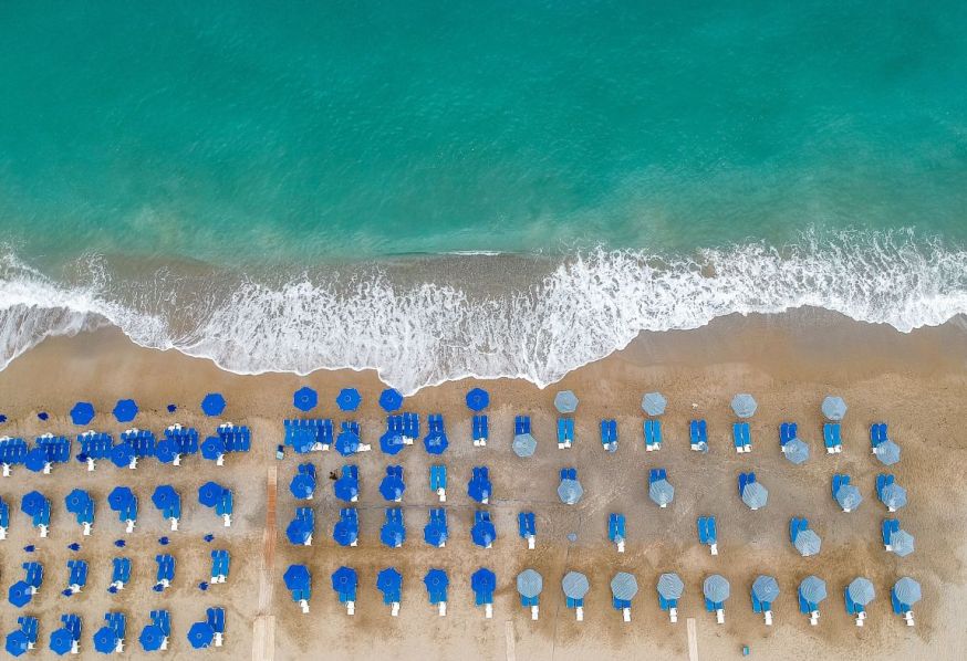 Prachtig, deze overview van het strand en de azuurblauwe zee. De foto heeft als het ware een horizon, maar wel een hele bijzondere. Het beeld wordt extra speciaal door de op de milimeter nauwkeurig geplaatste blauwe strandstoelen die de onderkant van de foto bevolken. De stoelen zijn nu nog leeg, maar reken maar dat het er op een mooie dag stampvol zit. Mooie foto, Ferry!