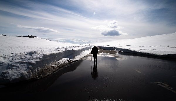 ‘Tijdens onze rondreis door Europa wilden we graag naar de Poolcirkel in Noorwegen. Maar het was zó koud dat we er maar heel kort zijn geweest. De man op de foto heeft duidelijk moeite om vooruit te komen.