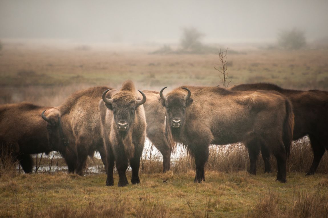 Op goed geluk op pad om te proberen de Wisenten te vinden. Geen idee waar ze zouden lopen, maar bij geluk liepen we er bijna meteen recht tegenaan. De mist op de achtergrond maakt het nog mooier.